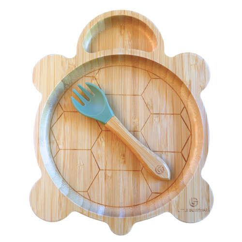 Eco-friendly bamboo feeding sets for little ones - plates, bowls, spoons, and forks in adorable animal designs!
